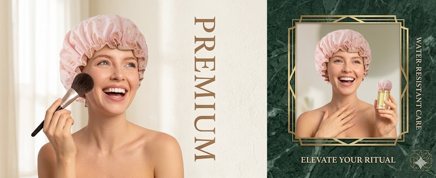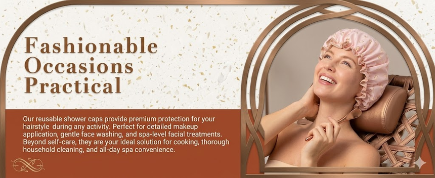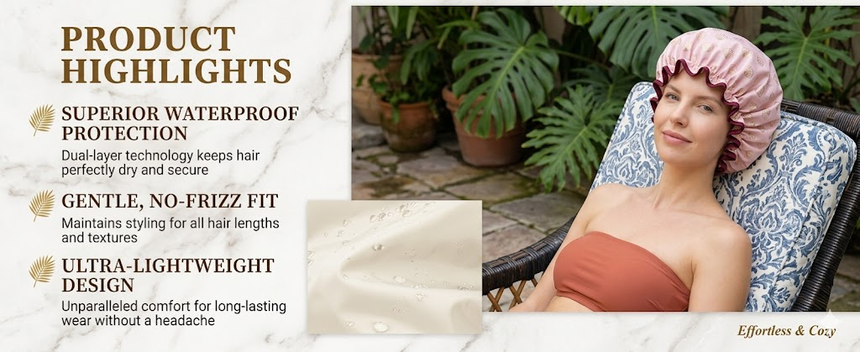 Hicober Reusable Shower Cap for Women, Large Waterproof Shower Bonnet Washable Elastic Band Bath Hair Hat for Long Hair, Braids